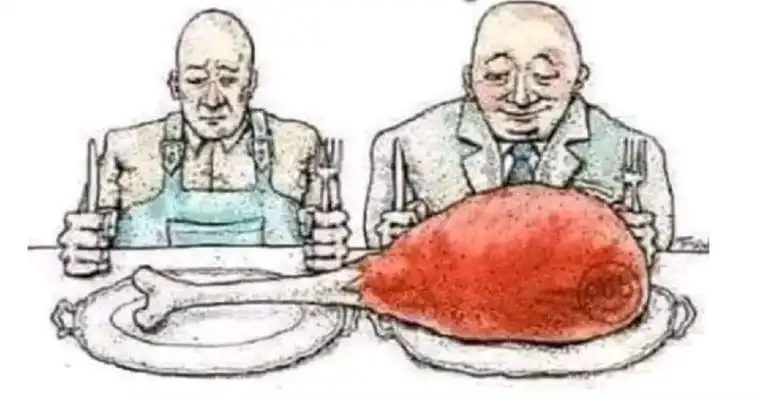 Прашањето на Трендафилов е реторичко, но болно директно. Сликата која кружи на социјалните мрежи (двајца луѓе на маса, каде едниот го јаде целото месо, а другиот само празната чинија) е најдобрата дефиниција за „просекот“ во Македонија.
