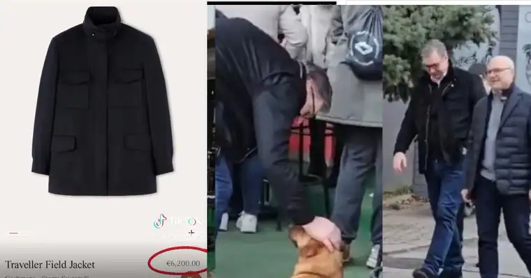 Појавувањето на српскиот претседател Александар Вучиќ во Нови Сад повторно отвори сериозни прашања за јазот меѓу официјалната приказна за „скромен живот“ и реалноста што ја гледаат граѓаните. Овојпат, вниманието не го привлече политичка порака, туку јакната што ја носеше — луксузен модел од брендот Loro Piana, вреден околу 6.200 евра.