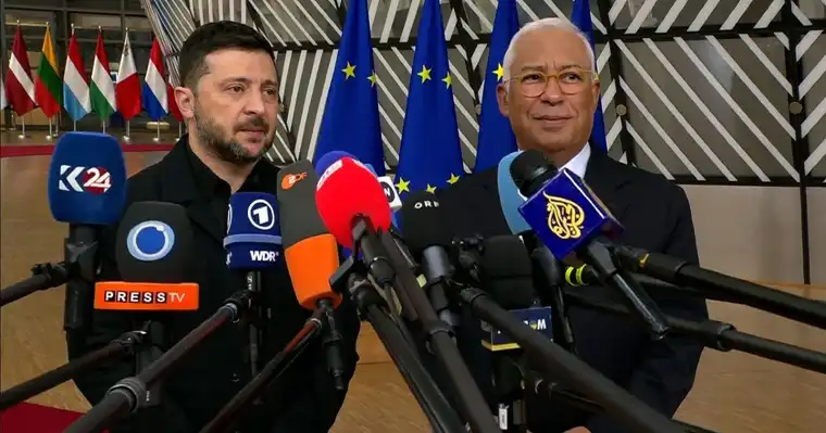 „Нема територијални отстапки,“ категорично порача Зеленски по пристигнувањето на самитот на ЕУ во Брисел во четвртокот. Неговата изјава доаѓа утрото по воведувањето нов пакет санкции од Европската Унија и САД кон Русија, поради одбивањето на Москва да се согласи на прекин на огнот.